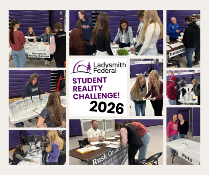 We hosted the Student Reality Challenge on March 18, 2026, welcoming students from Ladysmith, Bruce, and Flambeau High Schools for a hands-on financial literacy experience. This interactive program gave students a realistic look at managing money, from budgeting and everyday expenses to balancing a checkbook.