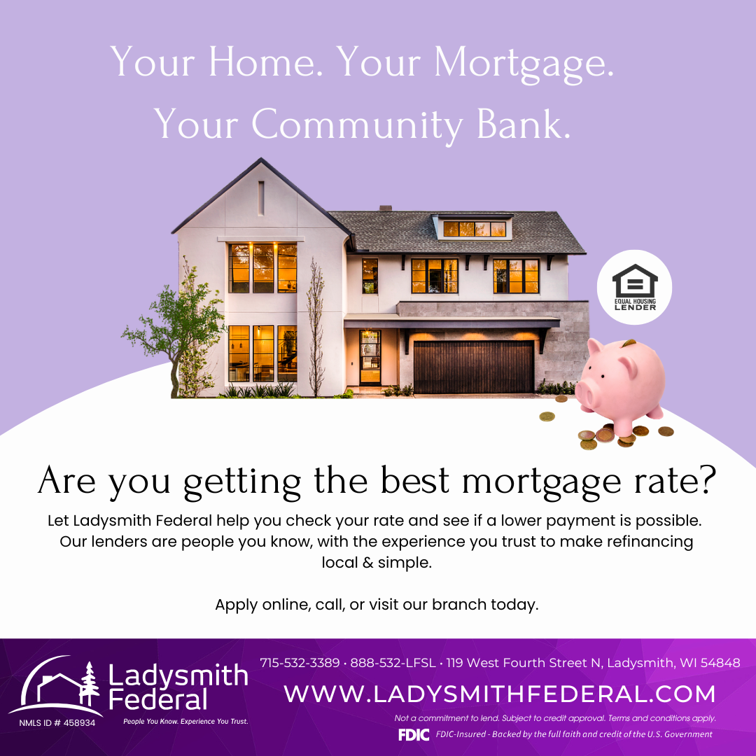 If you're unsure if you're getting the best mortgage rate, now is the perfect time to find out. Let Ladysmith Federal help you check your rate and see if a lower payment is possible.